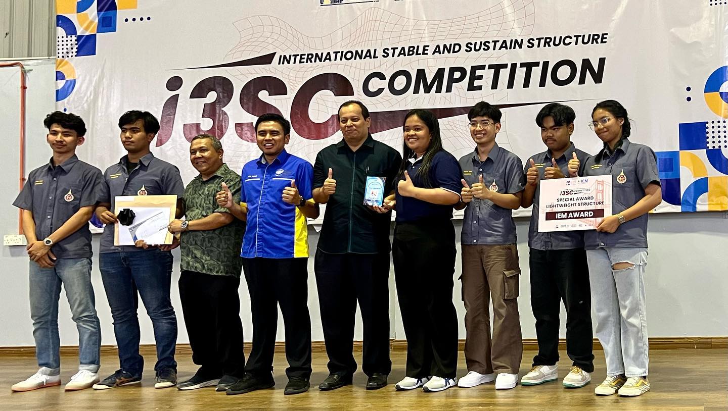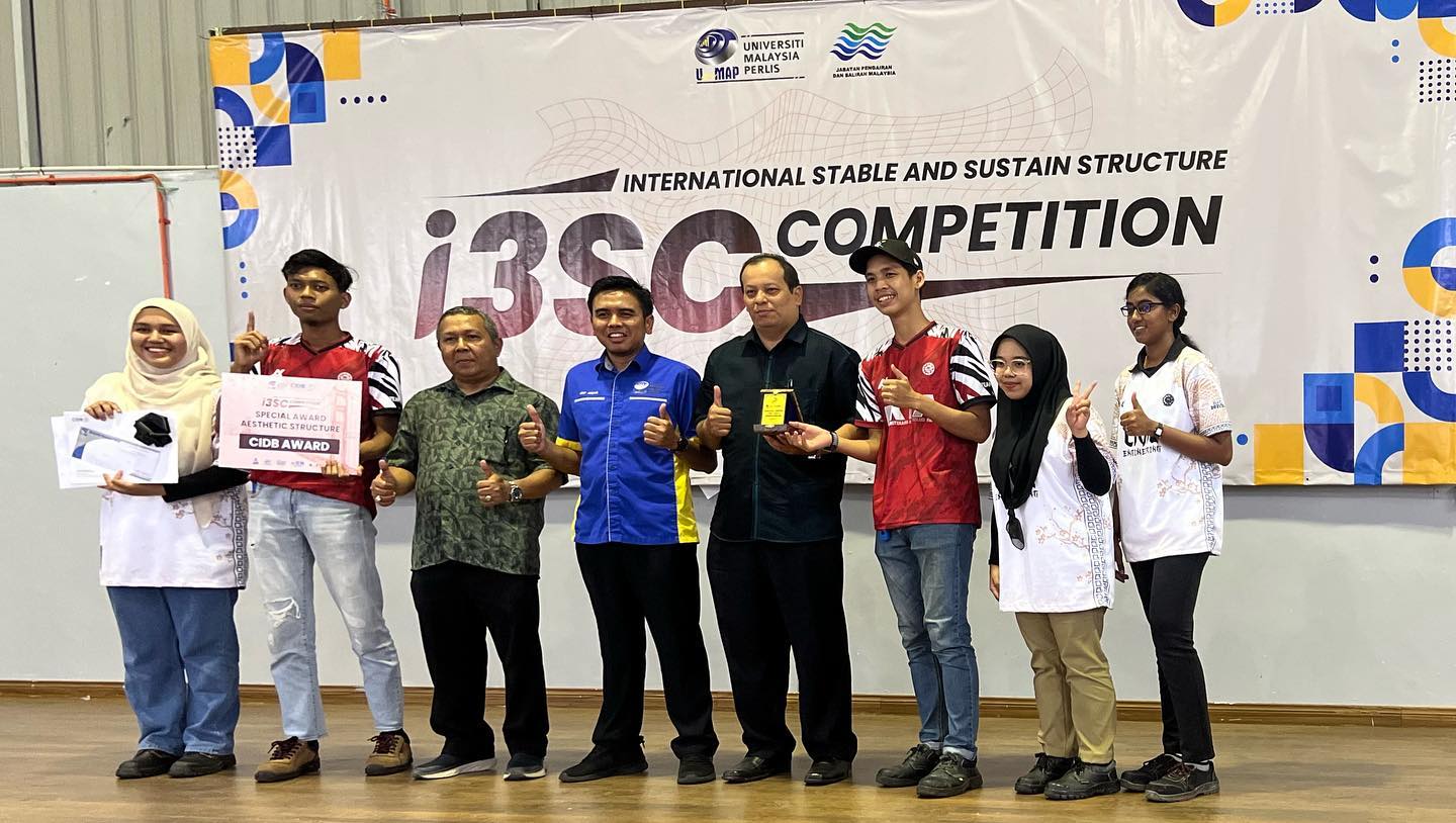 International Stable and Sustain Structure Competition (i3SC) 2023 program was successfully held at the JPS Perlis Complex, Pengkalan Asam organized by the Faculty of Civil Engineering & Technology (FKTA) in collaboration with the Perlis State Irrigation & Drainage Department (JPS). The inauguration of the program was completed by PM Ir Dr Mohd Arif Anuar, Director of the UniMAP Student Development Center representing Timb. Nain Chancellor HEPA.