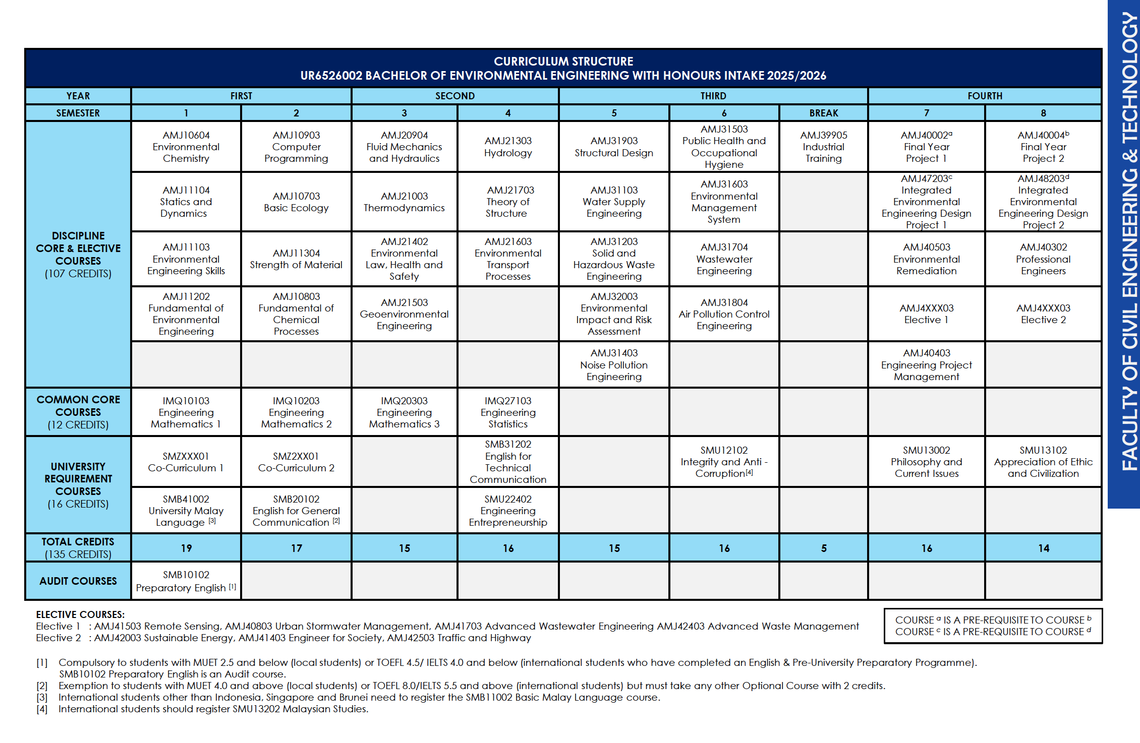 Curriculum Structure for Environmental Engineering Program