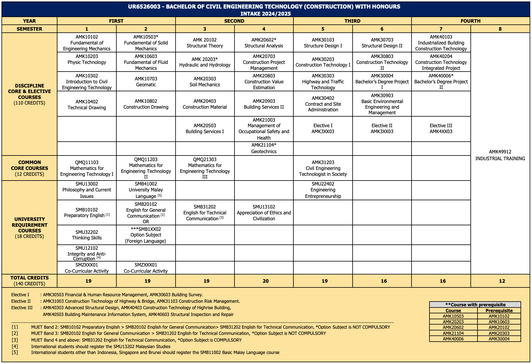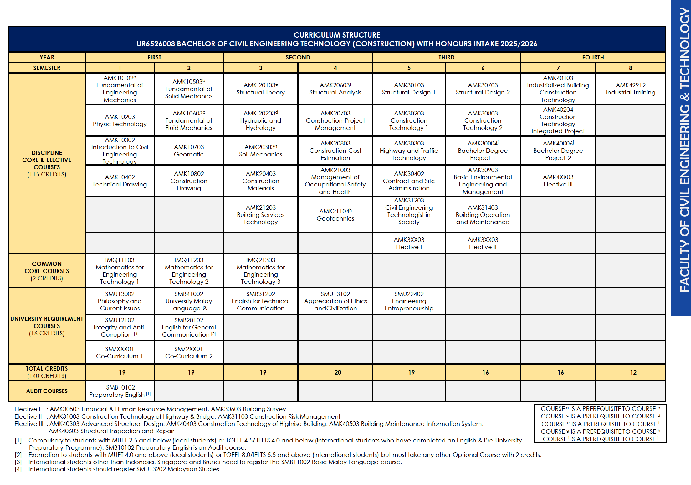 Curriculum Structure for Civil Engineering Technology (Construction)