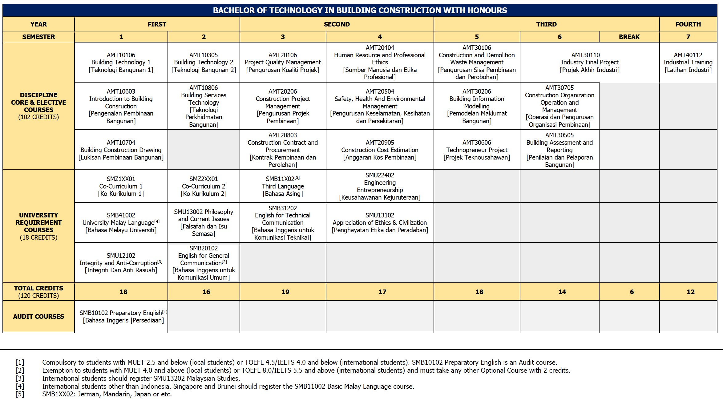 Bachelor of Technology In Building Construction With Honours